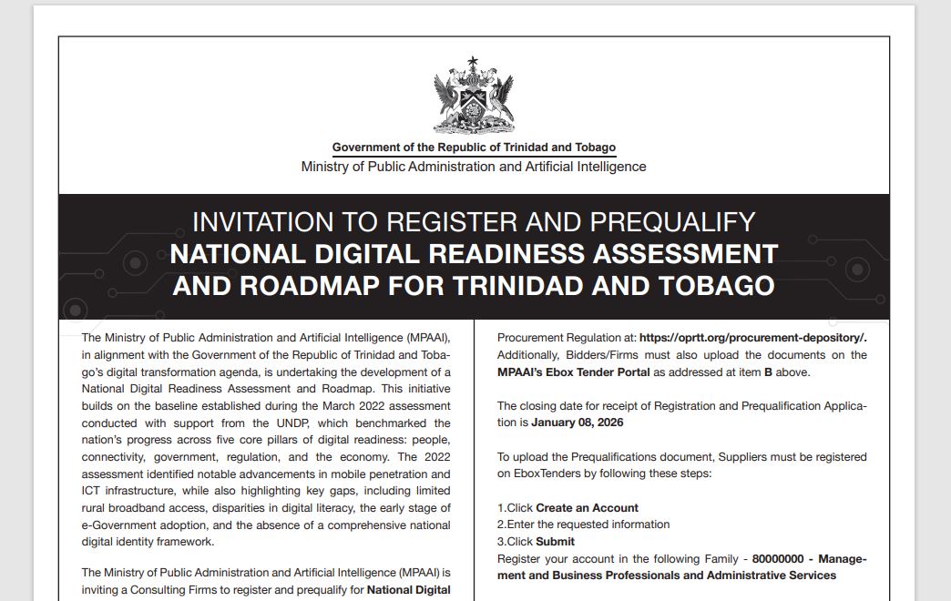 Invitation to Register and Prequalify National Digital Readiness Assessment and Roadmap for T&T